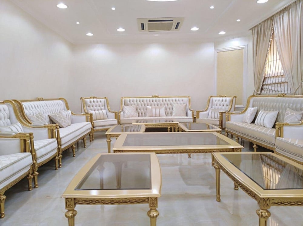 كنب مجالس رسمي أبض ذهبي - تفصيل بالطلب